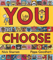 A big catalogue full of pictures to browse through and choose the things we'd all like to be able to choose in real life, if only we could - where to live, who to live with, what pets to have, what to wear, what to eat, where to sleep, and more. Hundreds of different choices, some sensible, some daft. This book was chosen as a picture book to be given to all three year olds by Bookstart charity, but the book works well with a wide age range (including adults), as something to be looked at alone or as a focus for discussion or even as a starting point for story ideas.